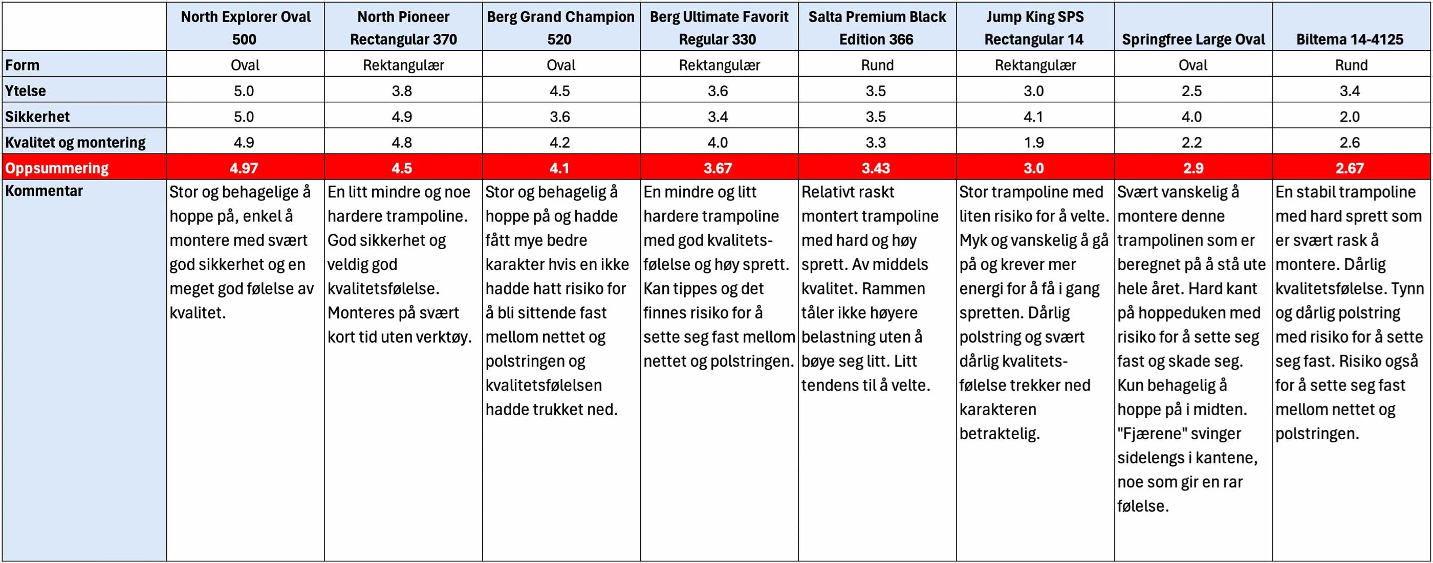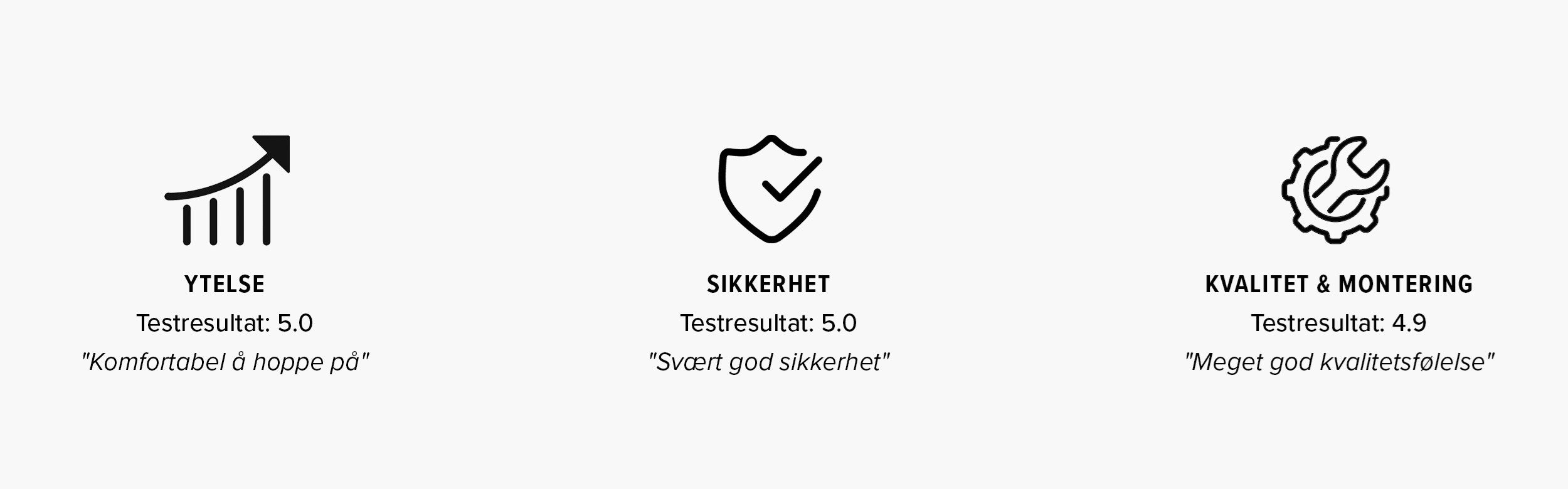 We have asked RISE to evaluate our trampoline North Legend in comparison with 7 others. RISE is an independent state research institute with unique competence to test and evaluate performance, safety, and quality. The test comprised of more than 17 different tests that pushed the trampolines to the limit.
