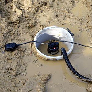 The idea here is that you put a 'submersible' pump into the bottom of your hole and connect to a permanent electrical feed. You will need to dig a trench for the cable and outlet hose (see top picture).