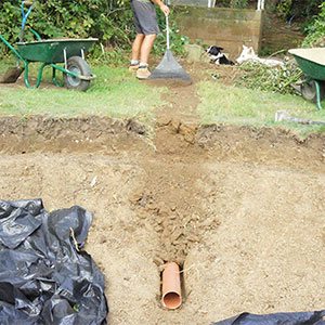 As per the diagram, a soakaway is a ‘ pit’ filled with a combination of stone, shingle or brick and helps any rainwater drain away. At the bottom of the hole that you dig for the trampoline, build a pit at the bottom of it approximately 600 x 600 x 600 and fill the bottom of it with bigger bits of brick or stone and the top with smaller pieces.